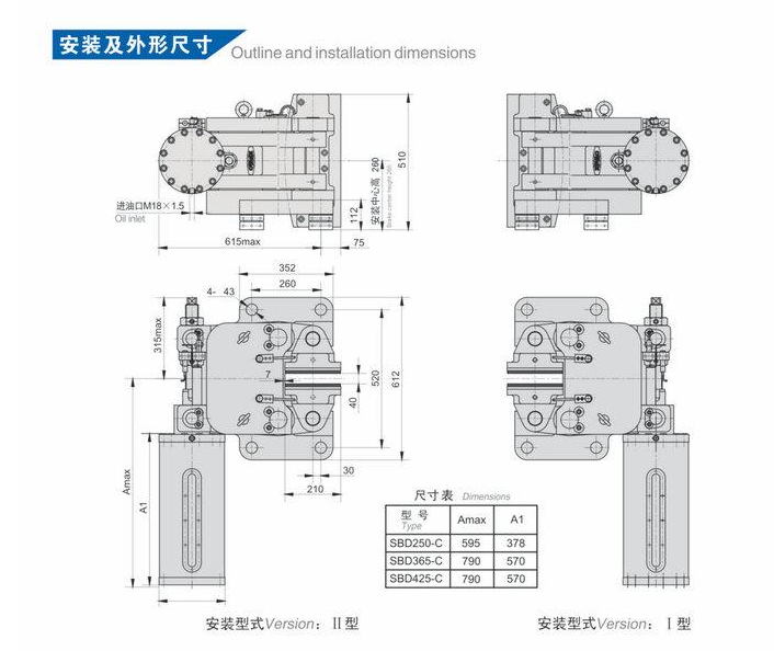 1、常閉式設(shè)計(jì),安全可靠;特制碟簧施力制動(dòng),液壓驅(qū)動(dòng)釋放;