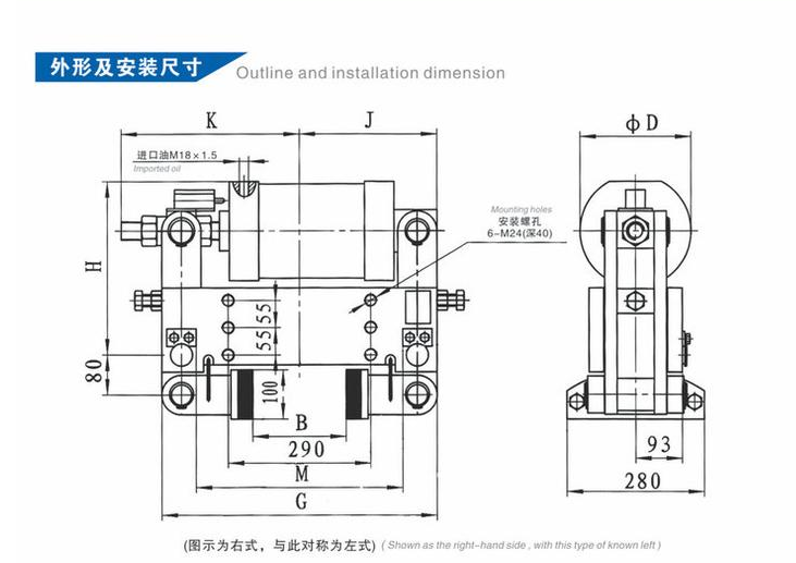 1、常閉式設(shè)計,液壓站驅(qū)動施力于碟形彈簧而釋放,安全可靠;